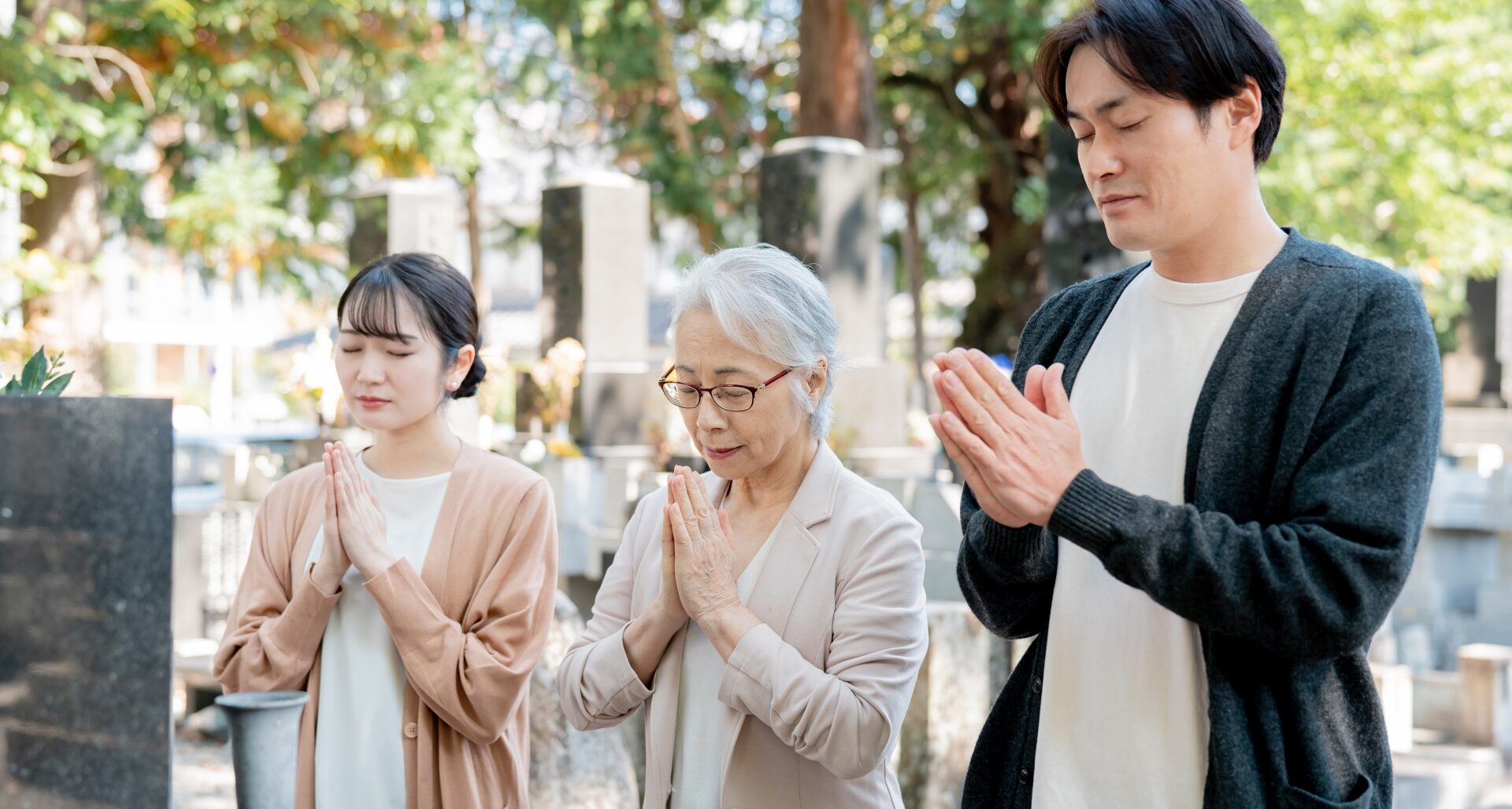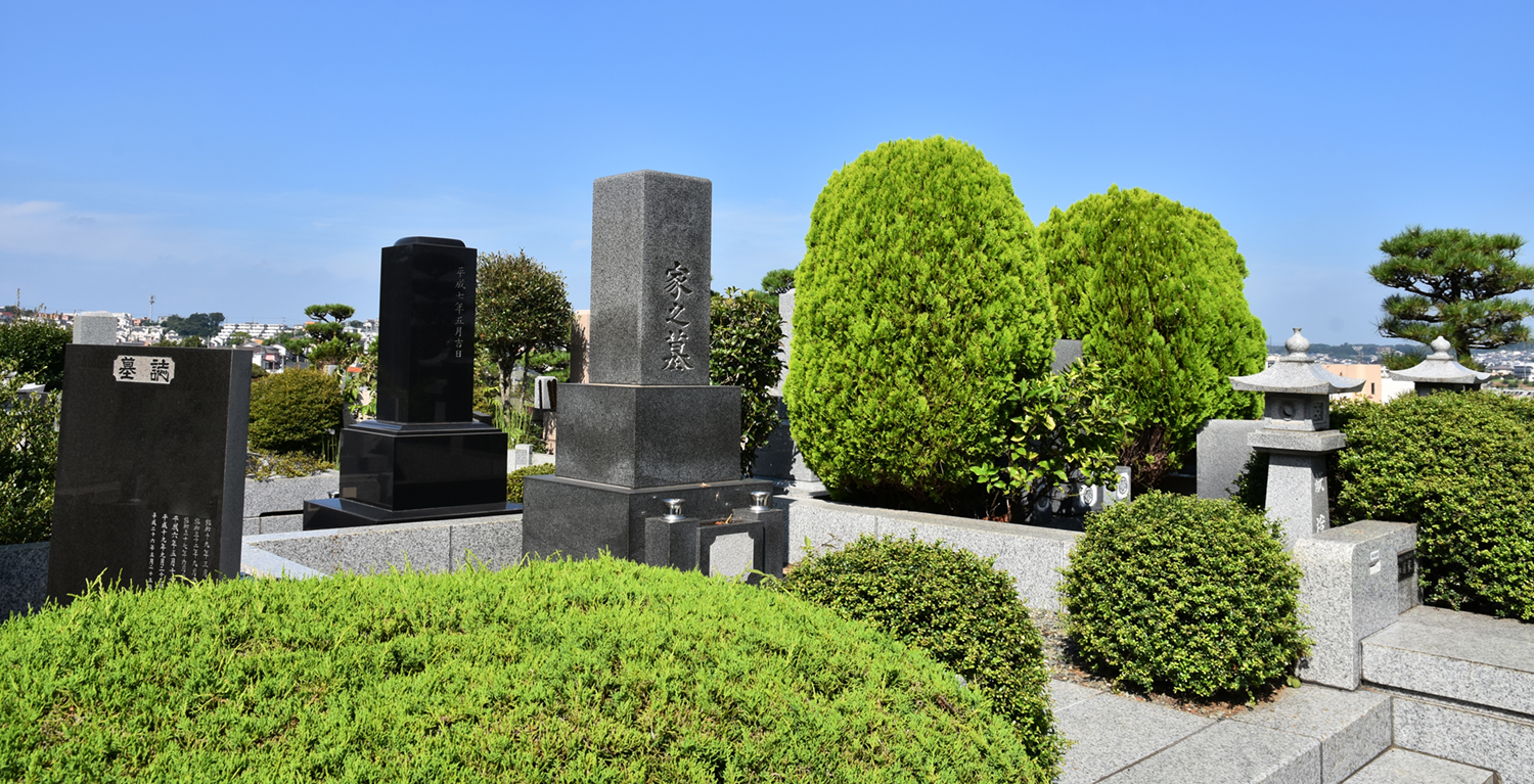 豊かな緑とお墓が調和する、安らぎの場所です。ここに眠る方々と訪れる人の心を、そっと包み込んでくれます。